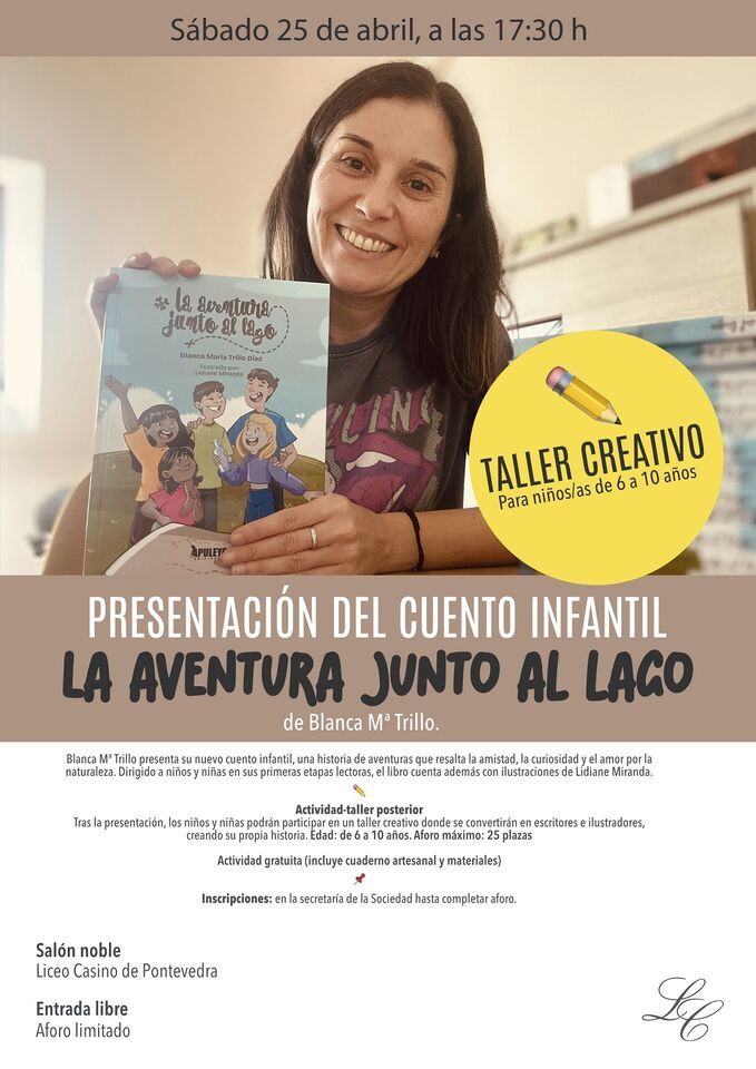 El 25 de abril a las 17:30, Blanca Mª Trillo presenta La aventura junto al lago, un cuento lleno de amistad, curiosidad y amor por la naturaleza 🌿La actividad que comenzará con una pequeña presentación del cuento y de como nació la historia, además de la lectura de un pequeño fragmento, tendrá una duración de entre 20 y 30 minutos.