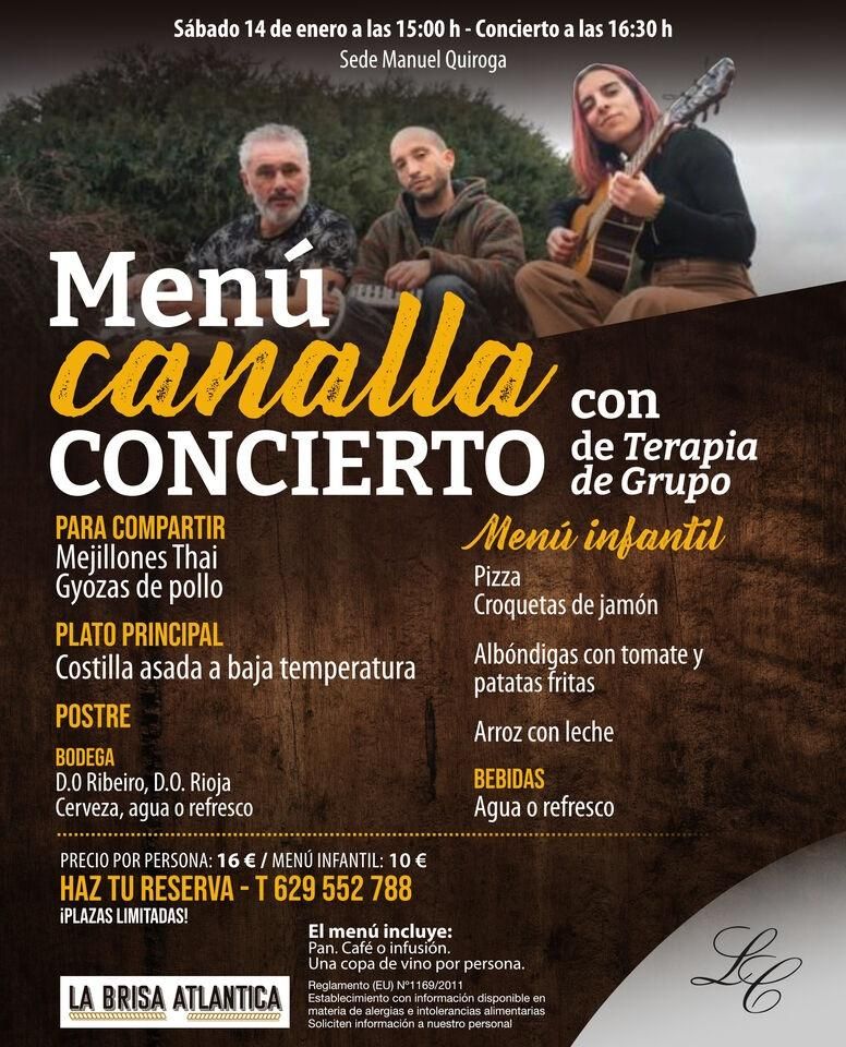 Reserva ya tu comida para este sábado y disfruta del concierto posterior a partir de las 16:30 horas a cargo de la agrupación "Terapia de Grupo".