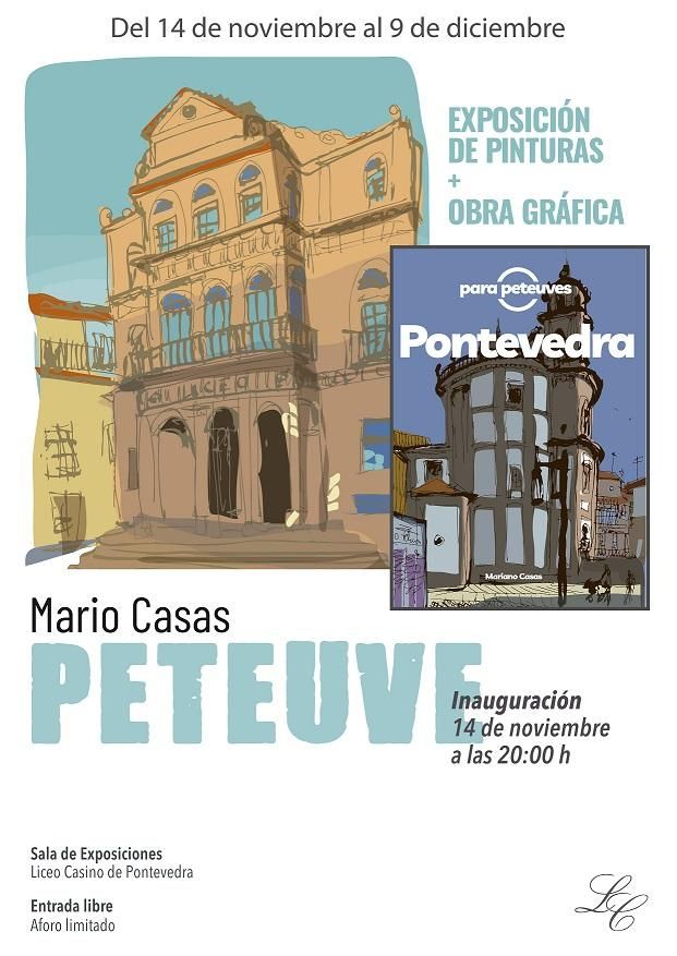 Además de la exposición, Mariano Casas presentará su libro ilustrado Pontevedra Para Peteuves, una obra de su autoría que complementa el recorrido visual de la muestra.