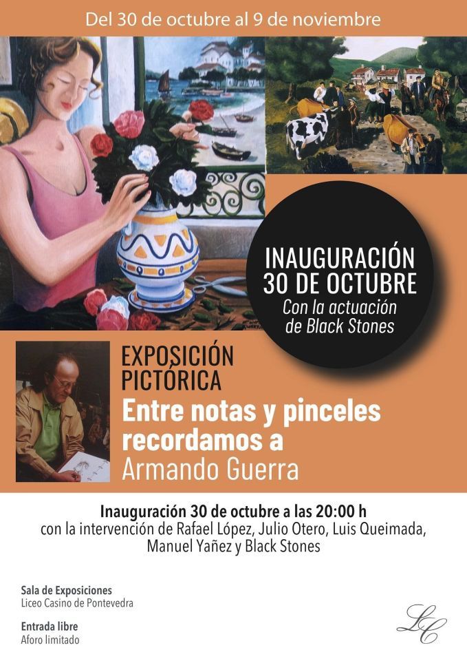 Durante el acto, intervendrán destacados amigos de Armando Guerra: Rafael López, Julio Otero, Luis Queimada, Manuel Yáñez y el grupo Black Stones. Sus palabras y actuaciones servirán para rememorar la figura del artista pontevedrés, subrayando su trayectoria y la huella que dejó en quienes le conocieron.