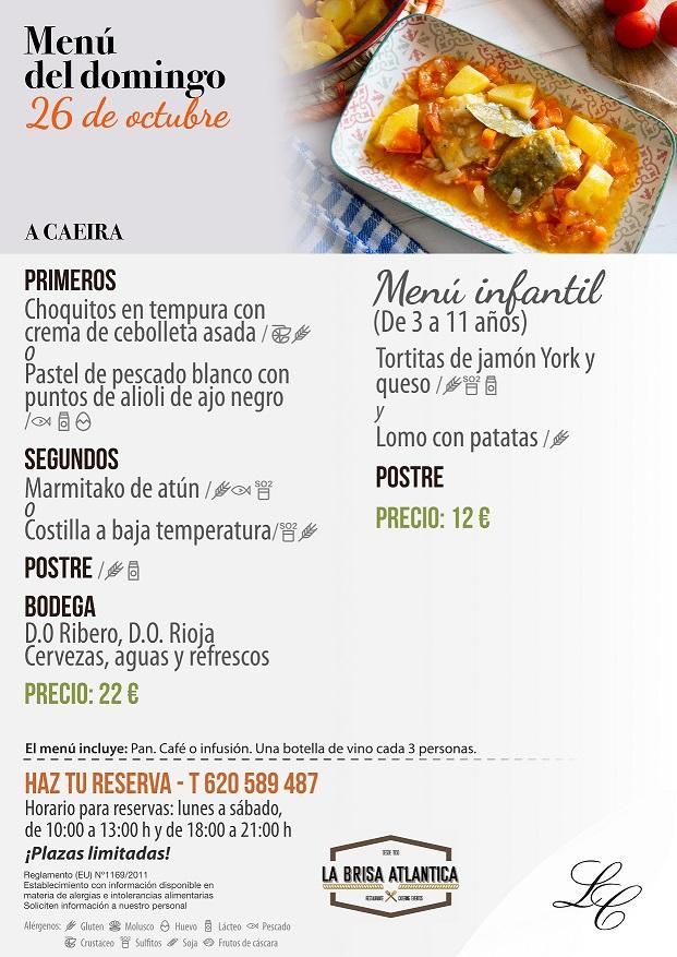 Menú del domingo 26 de octubre en A Caeira 2025