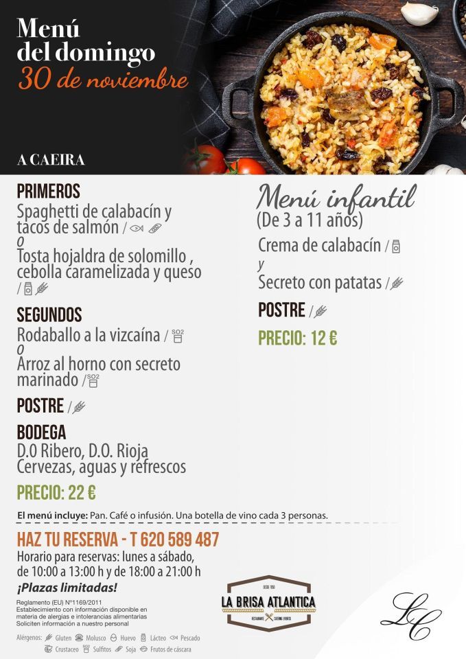 Ponemos a tu disposición el menú correspondiente al menú del domingo 30 de noviembre en A Caeira.
