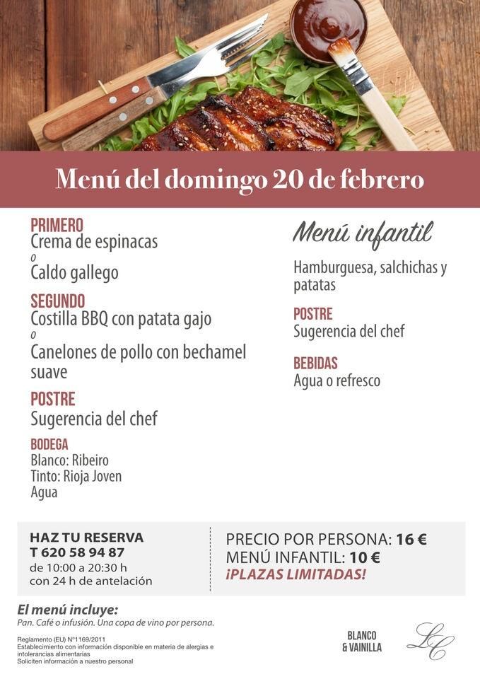 Menú domingo 20 de febrero