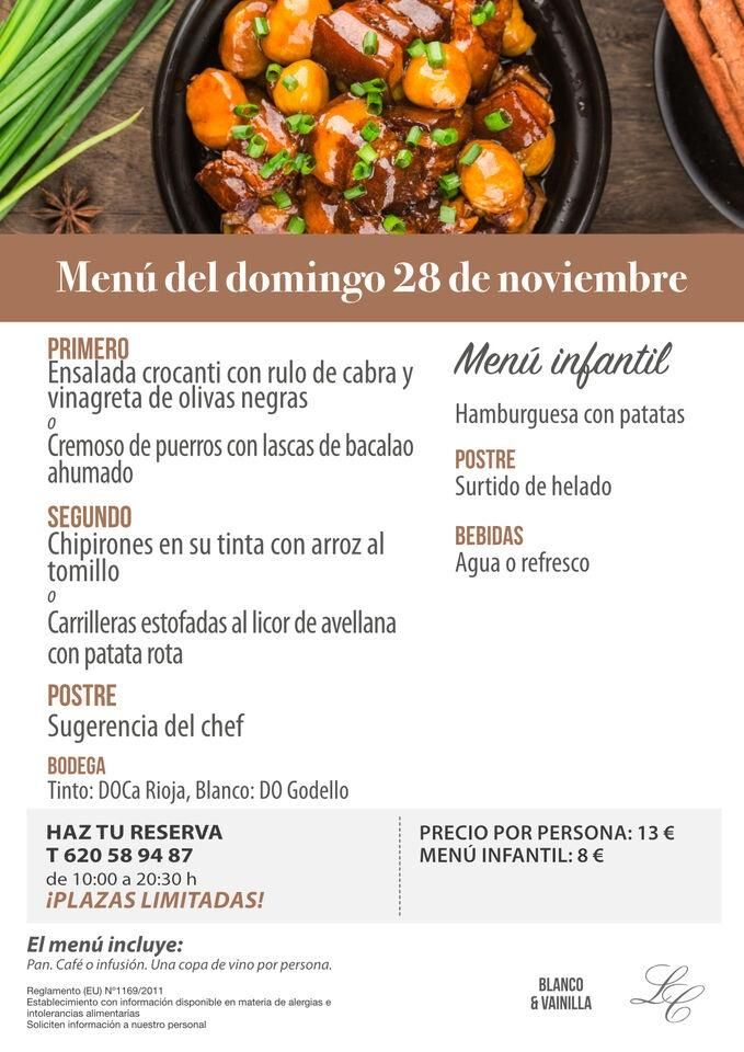 MENÚ DOMINGO 28 DE NOVIEMBRE