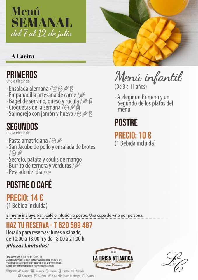 Reservas en el teléfono 620 589 487 de 10:00 a 13:00 y de 18:00 a 21:00 horas.