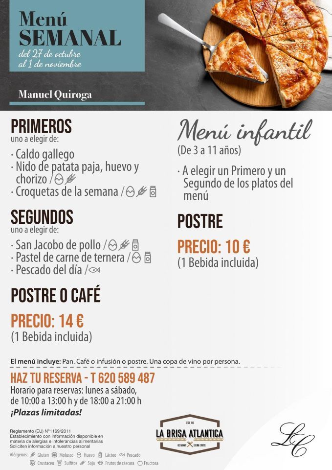 Ponemos a su disposición el menú de la semana del 27 de octubre al 1 de noviembre en Manuel Quiroga