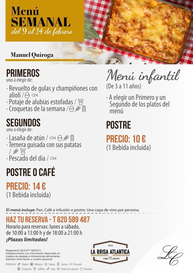 Menú Semanal en Manuel Quiroga del 9 al 14 de febrero 2026
