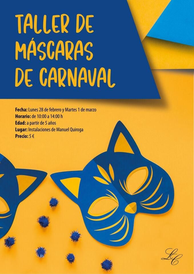 El lunes 28 de febrero y el martes 1 de marzo en horario de 10,00 a 14,00 horas contaremos con un taller de Máscaras de Carnaval para niños a partir de 5 años